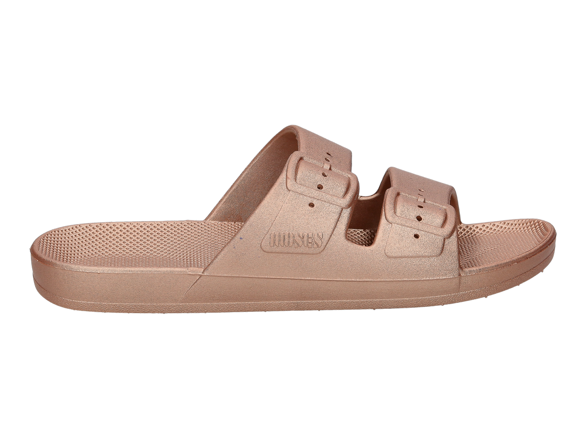 Freedom Moses vindt de klassieke flip-flop-stijl opnieuw uit om je een look te geven die zowel cool als actueel is. De slippers Freedom Moses zijn gemaakt om koelte en comfort toe te voegen aan je dagelijks leven. Het freedom design is gebaseerd op een herkenbare stijl en wordt met een frisse touch een gekleurde must have fashion accessoire.